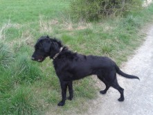 Dass ist meine Finja, eine schwarze Labradoodle-Hündin. Heute ist sie im 5. Lebensjahr, und dass Sie seit 3 Jahren Anifit frisst, verdanke ich meiner Freundin und Anifitberaterin Anja Beyers. Sie hat mir erstmals aufgezeigt, warum sich ihre Schnauzhaare orange verfärbt hatten und dass ich viel zu wenig von dem gefüttert hatte, was ich aus dem Supermarkt zuvor erwarb. Sie wog damals 17 kg, was ich für völlig normal hielt, da ich auch sehr auf meine Figur achte. Ihre Häufchen allerdings waren enorm groß, was mich ärgerte, da ich sehr viel eintüten musste. Meine Freundin zeigte mir Finja‘s Probleme. Die Hüfte ragte ein klein wenig hervor, ihre Rippen malten sich am Körper ab und an der Schwanzwurzel war ein Loch. Ich war sehr beschämt, aber heilfroh, dass sich das jetzt ändern würde. Heute wiegt sie erstaunliche 22 kg und ist immer noch schlank dabei. Die Häufchen sind handlicher geworden im eintüten. Keinerlei Mangel ist mehr zu sehen.